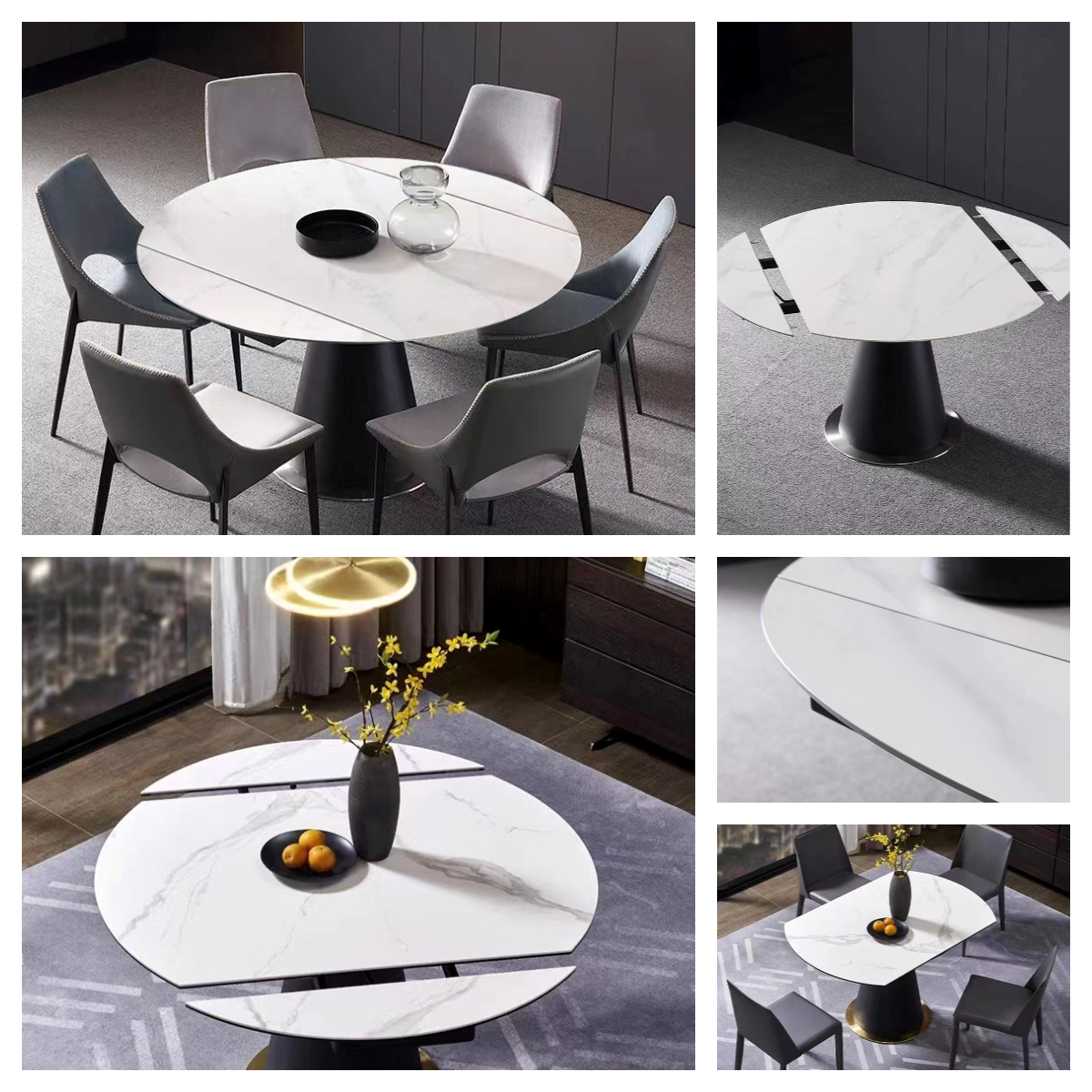 Flex Round Extension Dining Table , Marble Extension Dining Table 1500mm Length Images |